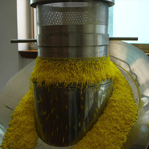 将搅拌好的物料制成所需的圆柱体颗粒,对粘性较高的物料尤为适合。该机制粒成型率高、颗粒美观、自动出料,避免了人工出料造成的颗粒破损,适合与流水作业操作。本机结构合理,外形美观,凡与物料接触部分均采用不锈钢制造。