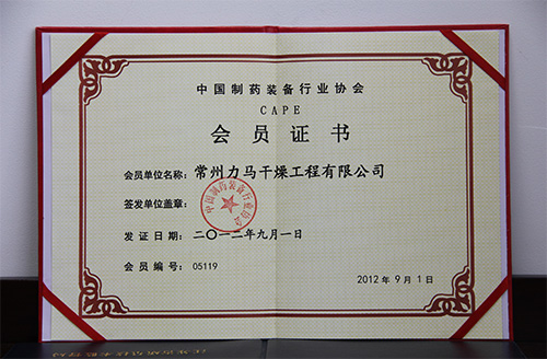 智能回转真空 | 中国机械工程学会 | 中国制药装备行业协会-会员证书 |
